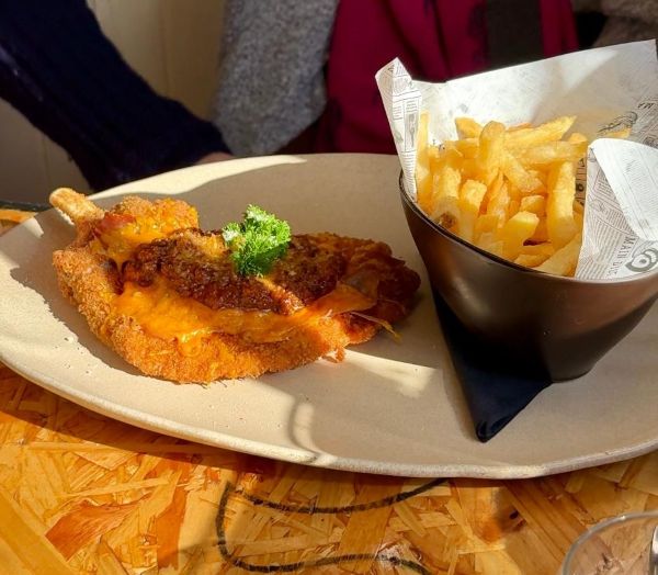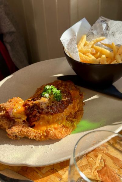 Emma chose the Cotoletta alla Bolognese, a real showstopper; a cured pork chop deep-fried in breadcrumbs, topped with Parma ham, Da Vinci’s secret Bolognese sauce, and mature cheese, served with triple-cooked chips.