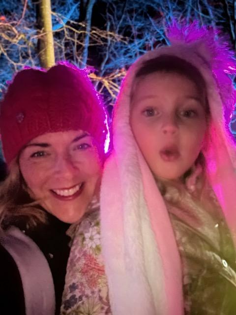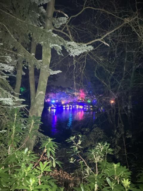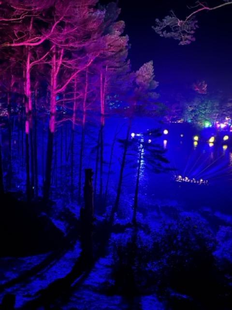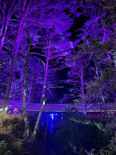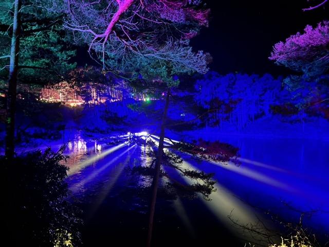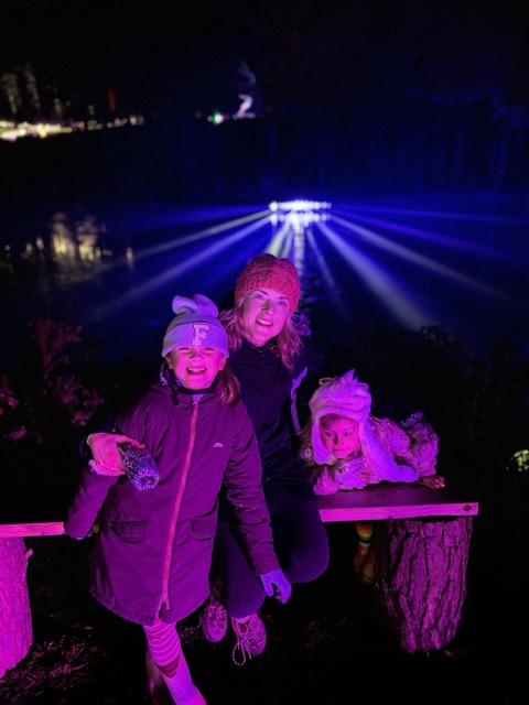 From the moment we arrived, bundled up against the freezing stillness of a clear January night, the atmosphere felt magical. The woodland paths and lakeside trail were illuminated by vibrant, professionally designed light displays that shifted and danced as we wandered around the water’s edge.