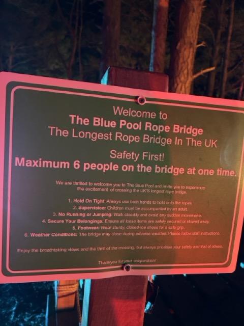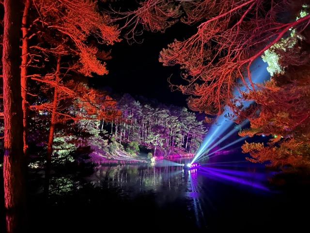 Unique after-dark experience: The Blue Pool’s woodland and lakeside trail come alive in lights and colour, unlike anything you’ll see locally.
