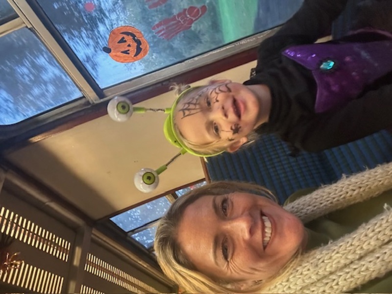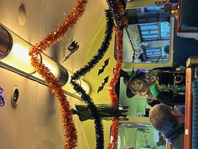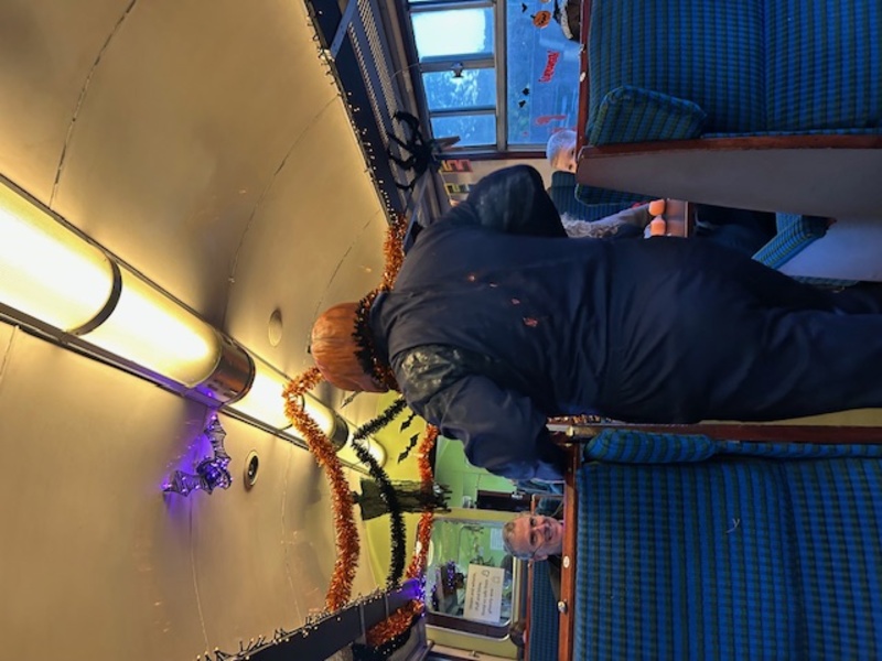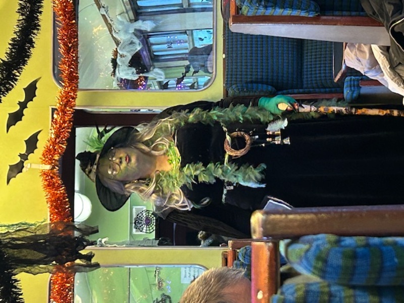 We were greeted by a mischievous witch and a mysterious pumpkin-headed character, both staying in full character throughout the journey. One of the highlights was the witch visiting each carriage to share spooky tales and haunted history from around the local area; blending genuine Dorset folklore with Halloween fun.