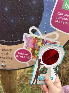 At the Visitor Centre you collect your trail pack, and inside you’ll find everything you need: a themed leaflet, stickers, a “magic” reveal lens (for uncovering hidden letters) and other fun bits to keep children fully engaged.