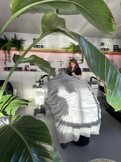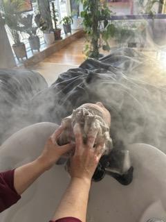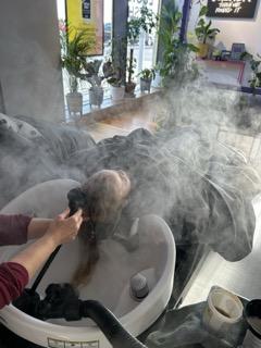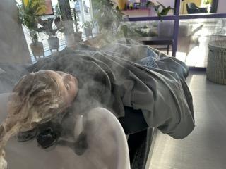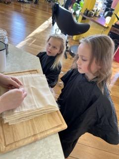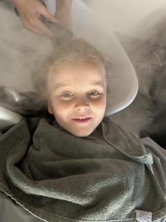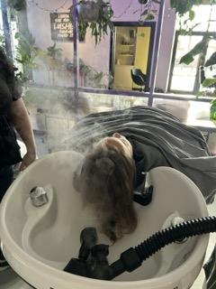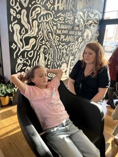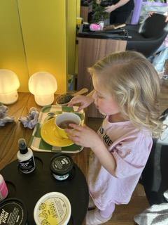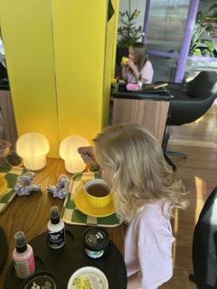 This is where Lush Hair Lab really stands out. Instead of sitting upright at a sink, the girls were laid onto comfortable spa beds and tucked under weighted blankets. Their hair was washed using steam and Lush products, creating a warm, soothing and incredibly relaxing experience.