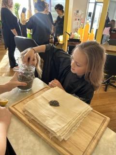 Here, they chose natural botanicals such as lavender and chamomile to create their own personalised hair wraps. Being involved in this process made them feel really special, and it was lovely to see how carefully everything was explained in a child-friendly way.